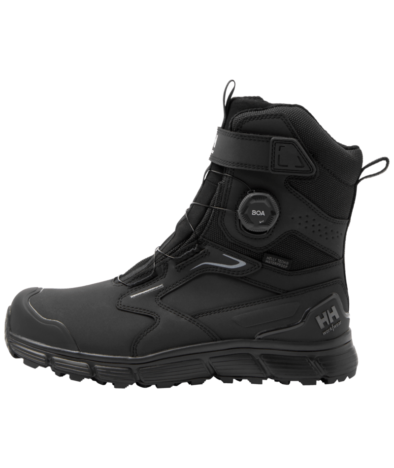 De composiet veiligheidsneus en metaalvrije perforatiebescherming bieden optimale bescherming zonder gebruik van metaal. Dankzij het BOAĀ® Fit System L+1 trek je de laars snel en eenvoudig aan en geniet je van een perfecte pasvorm. De HHĀ® DUAL-STRIDE tussenzool zorgt voor demping en energieteruggave, terwijl de HELLYGRIP ICE-rubberzool maximale grip biedt, zelfs op ijzige ondergronden.